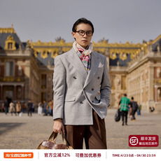 镇店之宝4折春季优雅条纹英伦羊毛双排扣商务修身男单西装214800