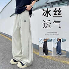 裤子男夏季新款冰丝长裤宽松运动裤大码休闲裤潮牌美式垂感直筒裤
