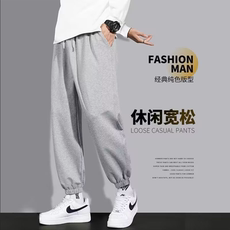 百搭基础款纯色运动裤男士春秋休闲裤美式宽松束脚裤子男大码卫裤