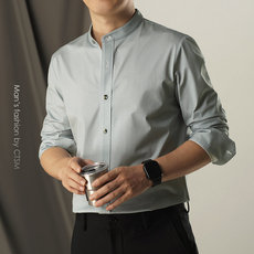 BODYDREAMBM新款修身长袖衬衫男秋季纯色商务通勤休闲百搭衬衣