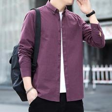 2025秋季新款磨毛纯棉长袖衬衫商务休闲衬衣青年上衣男装外套衣服