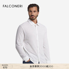 FALCONERI男士经典商务休闲纯色桑蚕丝混纺翻领长袖衬衫UML0180