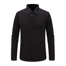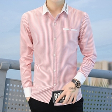 拓丽雅男士商务免烫衬衫春季长袖青年休闲韩版百搭潮流条纹衬衣