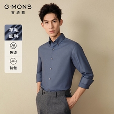 吉约蒙含羊毛衬衫男长袖灰蓝色高级感商务休闲纽扣领复古免烫衬衣