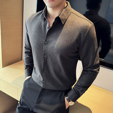 纯色长袖衬衫男2025秋装薄款净版休闲商务正装肌理感抗皱修身上衣