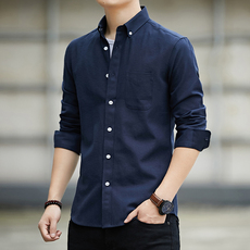纯棉新款男士长袖衬衫春秋季商务休闲时尚宽松款衬衣正装职业百搭