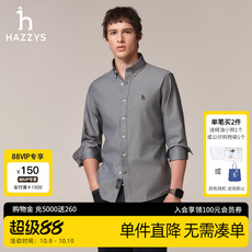 Hazzys哈吉斯奥莱男士长袖衬衫纯色上衣商务通勤纯棉休闲衬衣潮流