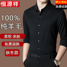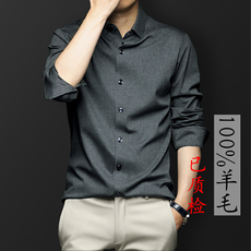 100%纯绵羊毛衬衫男长袖高端商务休闲抗菌秋冬季男士翻领衬衣免烫