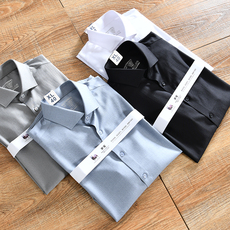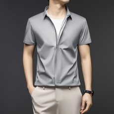 高端夏季新款拉链衬衫男士商务休闲亲肤舒适无痕翻领纯色百搭衬衣