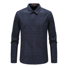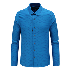 Q1757九换季断码清仓春秋男士商务休闲时尚蓝色提花全棉长袖衬衫