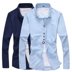 AB1396邦纳男春秋长袖衬衫 棉休闲商务上衣 深蓝色 时尚都市