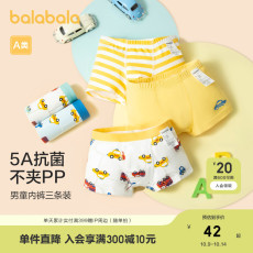 巴拉巴拉儿童内裤男童四角短裤棉平角不夹PP宝宝小大童抗菌三条装