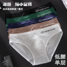 潮男士内裤超柔一片式三角裤低腰纯色中青年裤衩超薄冰丝性感底裤