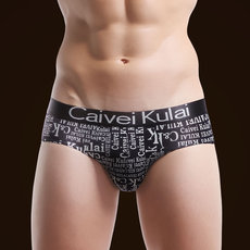 男士内裤三角裤男冰丝νckν透气印花加肥加大码中腰夏季三角裤头