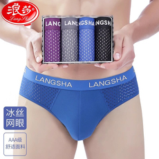 4条装浪莎男士内裤网眼三角裤夏季薄款竹纤维男三角裤冰丝短裤头