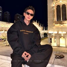 【奥莱特价】潮牌连帽卫衣男士秋冬季2025新款美式高街大码套头衫