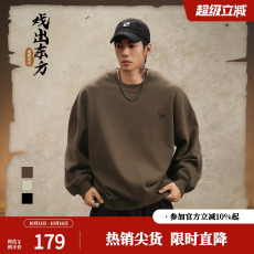 鹿家门秋季宽松大码加绒重磅卫衣男运动健身套头衫圆领情侣上衣