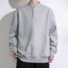 卫衣男亨利领套头针织立领上衣美式重磅纯色秋季秋冬款潮宽松大码