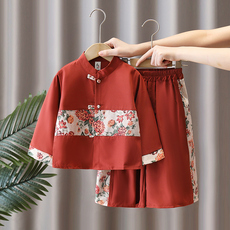 新中式亲子装儿童唐装国风套装春秋季女童汉服男童古风帅气小男孩