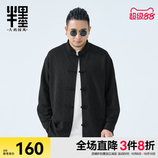 半墨大码男装新中式立领衬衫男士秋季新款中国风盘扣唐装外套宽松