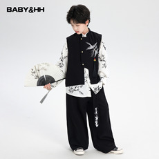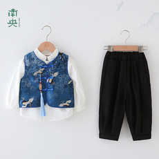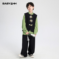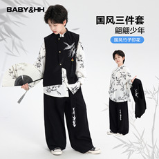 国风男童汉服春季套装宝宝新中式马甲儿童唐装秋款男孩古风三件套