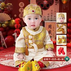 中国风百天宝宝周岁礼套装唐装春秋冬周岁礼服男女抓周儿童抓周服