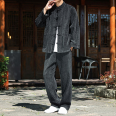 唐装男款中国风长袖套装春秋国潮中式复古男装中老年外套长衫汉服