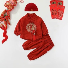 春秋款宝宝周岁礼服男女宝宝婴儿百天宴长袖套装国风唐装一岁生日