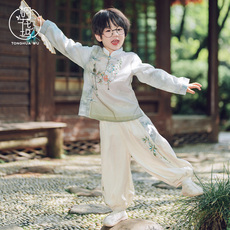 夏小承唐装圆领袍儿童中秋古风男童汉服幼儿园国风秋季宝宝男孩夏