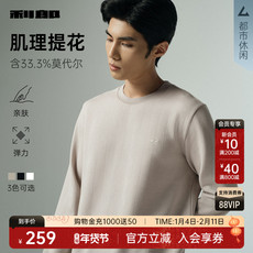 【加绒可选】海澜之家山不在高卫衣春秋新圆领珠地小标宽松上衣男