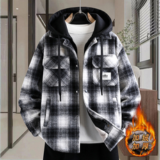 加绒加厚男士外套潮流百搭冬季青年保暖男装夹克休闲宽松连帽上衣