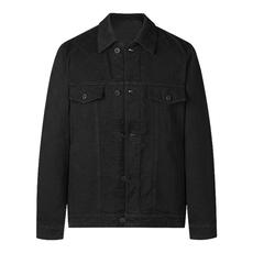 太平鸟男装立体提花行政夹克秋翻领商务休闲茄克外套青年黑色上衣