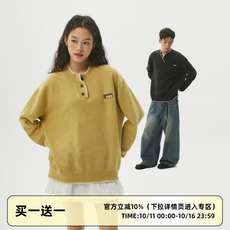 FOFWMODE 秋冬季老钱风提花翻领套头毛衣男女宽松纯色长袖针织衫