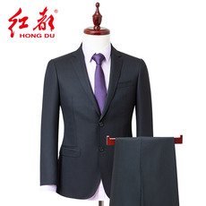 红都20新款男士西装套装进口羊毛商务时尚条纹修身双开叉套装西服