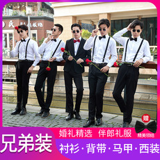 伴郎服装男马甲衬衫西裤三件套装春秋修身背心结婚新郎兄弟团礼服