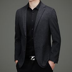 修身呢子青年新款潮流男休闲西装秋季男装纯色2023外贸大衣