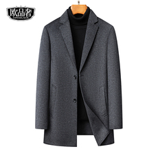 鼎铜羊毛大衣中长款西装领男中年修身商务休闲毛呢外套爸爸秋冬装
