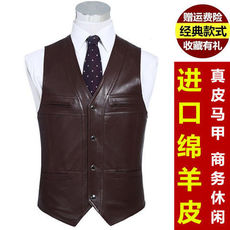 真皮马甲男士秋冬进口绵羊皮西装V领时尚修身款潮流真皮背心男式