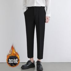 裤子男生秋冬季新款直筒修身加绒休闲小西裤男士九分小脚西装长裤
