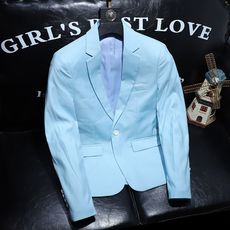 轻奢潮流时尚西服男外套春秋新款时尚青年天蓝色礼服韩版修身单西