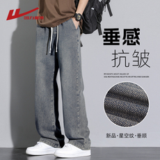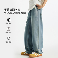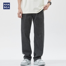 hansca弹力牛仔裤男宽松直筒2023夏季薄款美式复古休闲水洗阔腿裤
