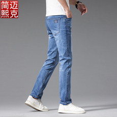 夏季高档薄款男士牛仔裤弹力宽松直筒裤百搭商务休闲裤子男