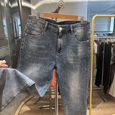 欧货烟灰色重工烫钻小脚牛仔裤男士潮牌显瘦时尚休闲2025轻奢薄款