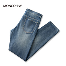 【豆家】91棉!柔软舒适!春夏薄款水洗蓝色直筒弹力休闲牛仔裤男