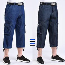 夏季薄款牛仔裤男宽松大码工装裤多口袋裤男式户外休闲牛仔7分裤
