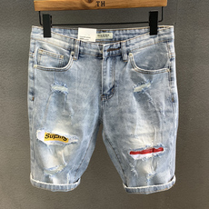 牛仔短裤男新款夏季潮牌薄款休闲运动裤子男士宽松直筒百搭七分裤