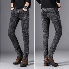 春夏薄款男士牛仔裤男潮牌弹力修身小脚裤休闲雪花裤子男纯黑纯红