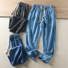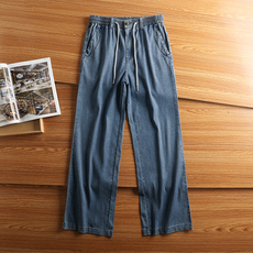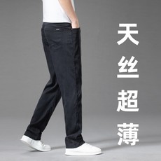 柔软天丝!凉爽透气夏季男士薄款松紧腰宽松直筒天丝牛仔裤休闲裤