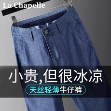 拉夏贝尔天丝牛仔裤男士夏季薄款莱赛尔修身直筒裤休闲长裤子男H