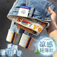 2025夏季薄款冰丝牛仔裤男士修身直筒修身新款夏天潮休闲长裤子